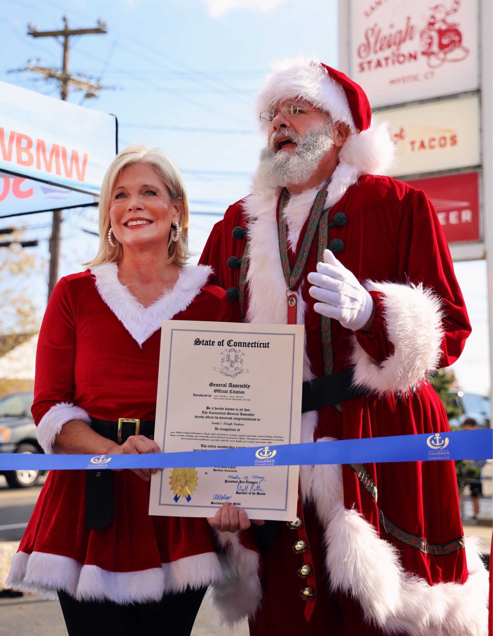 Brother Anthony Gallichio and Santa's Sleigh Station were honored with an Official Citation from the State of Connecticut General Assembly for exemplary work in the community of Mystic.